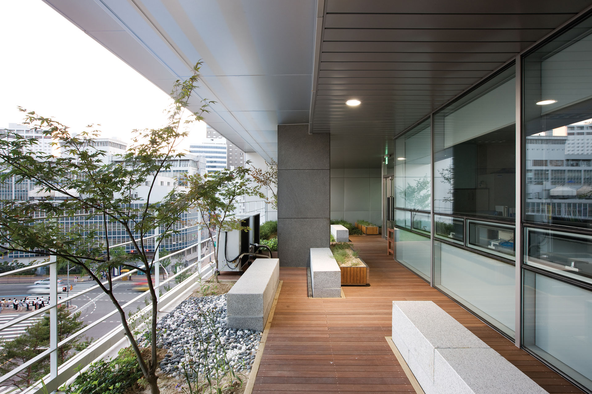 사람들이 모이고 즐기는 장소를 제공하기 위한 공간 만들기는 건물의 내외부에서 이루어진다. 명동과 을지로에서 유입되는 시민을 위한 근린공원 마른내공원의 조성과 시민들의 도심 조망과 휴식을 위한 공중정원은 기능적 프로그램 사이에 공공영역을 관입시키는 방법으로 시도되고 있다.