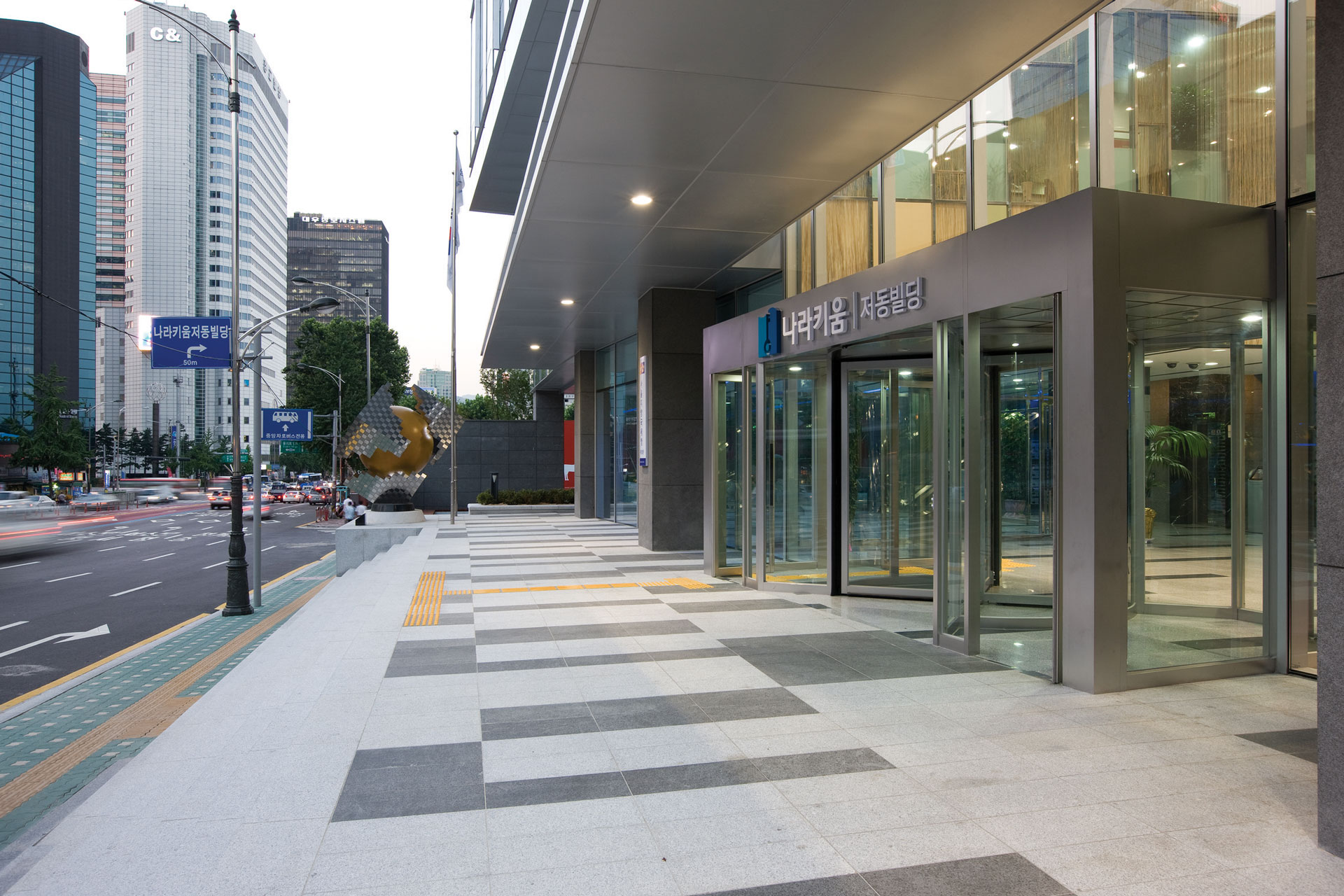 명동중앙시네마의 맞은편에 위치한 나라키움 저동빌딩은 고부가가치의 창출을 기대하는 국유부동산개발 첫 사업임과 동시에, 대지주변 청계고가를 철거한 청계천 복원사업과 낙후된 마른내길 주변을 새롭게 조성하는 ‘남산 제모습 찾기’와 연계된 복합적인 공공사업이다. 이러한 프로젝트의 특성은 다원적인 도시의 성격과도 같이 효율적인 업무공간 계획을 통한 경제성의 확보와 공공적으로는 정체된 인간, 자연, 문화의 흐름을 연결하고 자연친화적 도시환경을 이루는 것이다.