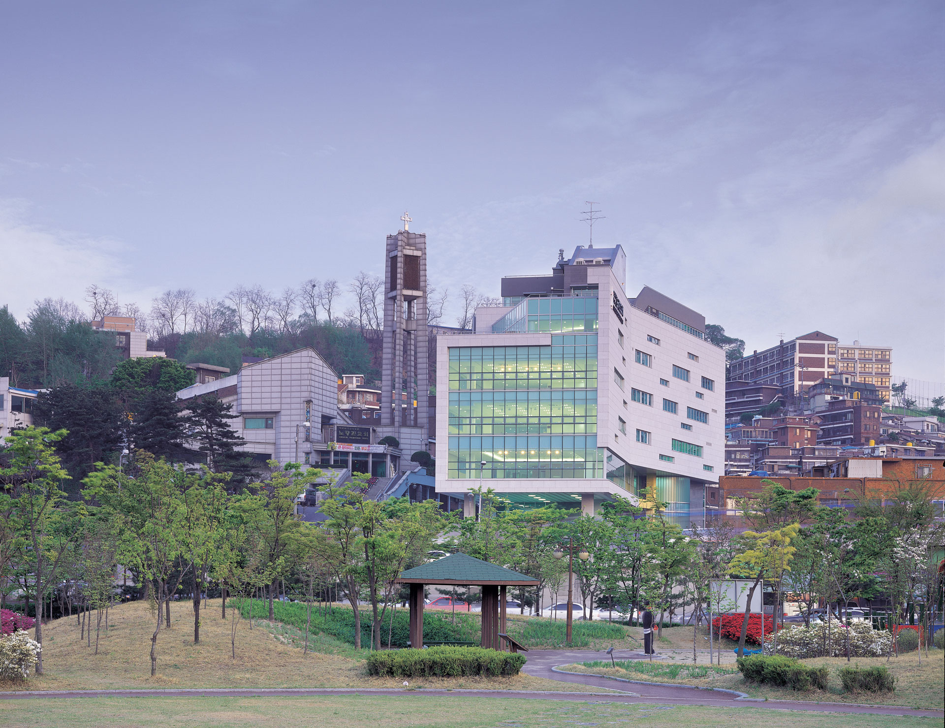 기존 본당은 한강을 접한 흑석동 언덕 초입에 도도한 강물의 흐름을 마주하고 있으며 종탑과 본당은 단아한 수직적인 형태를 갖고 있다. 본당과 6m 도로를 사이에 두고 계획된 100주년 기념관은 본당의 수직적인 상징성에 대비하여 한강의 조망을 적극적으로 내부에 끌어들일 수 있도록 경사지 대지에 부유하는 순수한 선형의 수평적 입방체에서 디자인이 출발되었다. 2.5층 정도의 단차가 나는 대지의 형상을 다이내믹한 큰 선의 변화로 형태적 특성을 부여하였다.