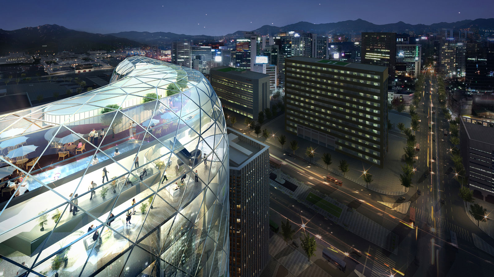 서울을 넘어 한국 도심 최고의 비즈니스 영역 중심부에 자리하는 6성급 호텔. 컨벤션센터, 메가급 휘트니스센터, 상업시설과 최고급 식음시설 그리고 300개의 객실. 공간은 매혹적이고 생동감이 있다. 맨 처음 전면의 현관을 통과할 때부터 모든 감각을 끌어들인다. 출입구에서 번지는 향기로운 공기, 로비에 번지는 선율, 프론트데스크를 이루는 감촉 좋은 마감재까지 이용객은 단번에 신선하고 따스한 모든 경험에 둘러싸이게 된다. 부드럽게 걸러진 자연의 빛이 가득한 공간을 상상해 보자. 생동감 있고, 사교적인, 고객의 안식처와 같이 편안할 수 있고, 명상이 허락되는 고요가 있는 장소를 그린다. 공간을 이루는 뜻밖의 디테일은 도심에서 벗어난 이용객의 감각을 일깨우게 할 것이다.
