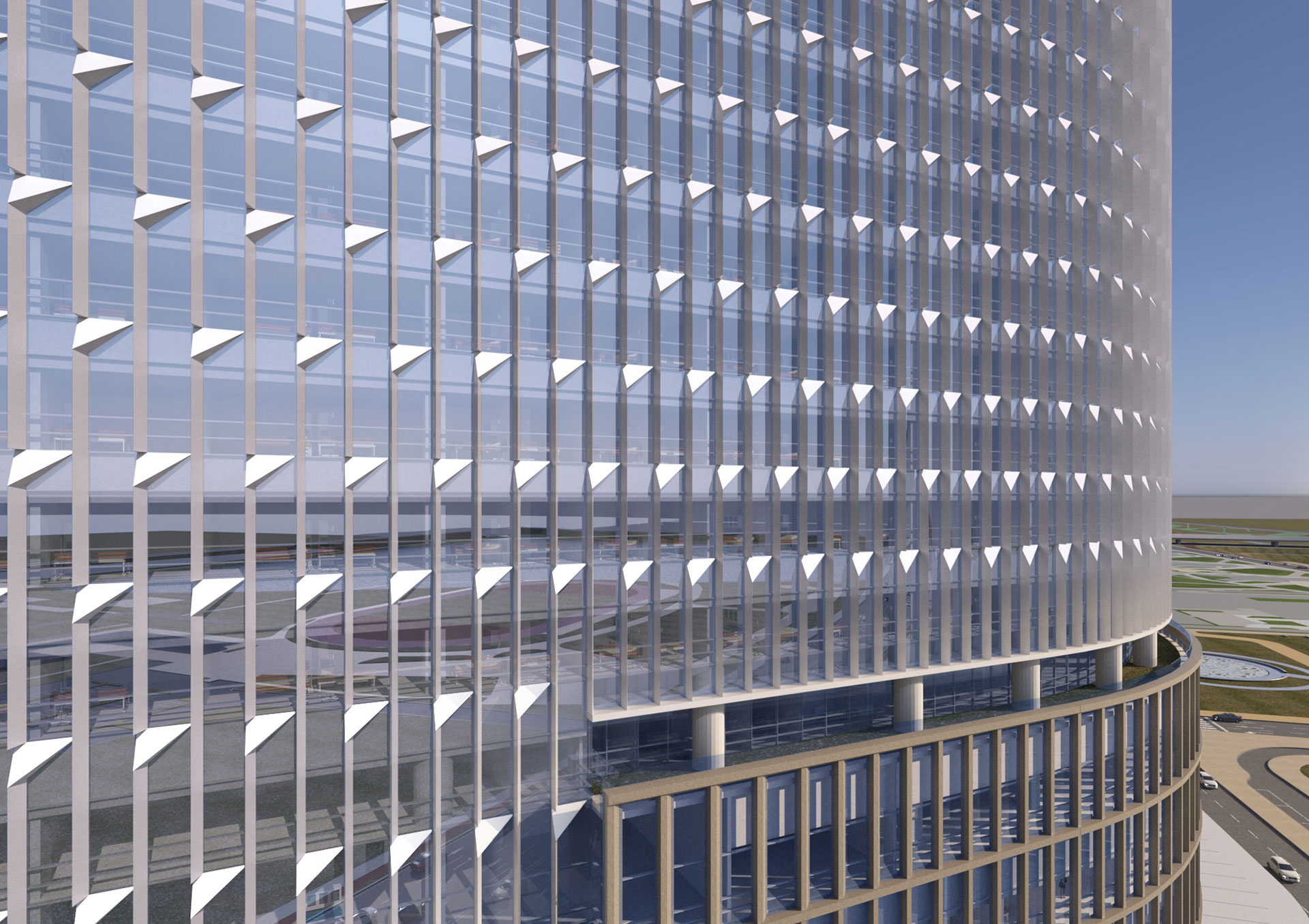 청라병원에서 주요한 디자인 어휘는 바다를 향해 열린 곡선형 배치와 의료복합타운 전체를 관통하는 통경축을 따른다. 저층부는 청라의료복합타운 전체의 거리 풍경과 조화를 이루도록 온화한 색상으로 통일감을 주고, 병동부는 서해의 유연한 이미지를 담아내며 청라의 상징 보석 ‘경옥(Jade)’을 표현하는 BIPV 루버는 친환경적이고 혁신적인 파사드를 구현한다.