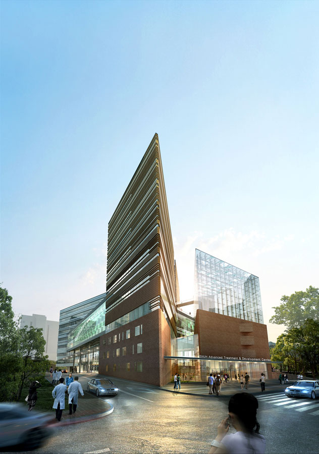 첨단치료 개발센터의 디자인은 두 가지 큰 주제를 내포하고 있다. 인류애를 바탕으로 세계로 나아가는 본병원의 기본정신을 존중하여 물리적, 감성적 확장을 은유하는 조형을 완성한다. 여기에 문화와 의료라는 두개의 주요 프로그램을 담아 상생의 공간으로 승화시키고, 문화적 장소성을 기반으로 한 치유환경과 최고수준의 치료공간이 결합된 전문센터를 구현한다. 미래지향적인 형태와 재료, 따뜻한 공간과 감성적인 재료가 최첨단 전문 의료센터의 가치를 한없이 빛나게 한다.