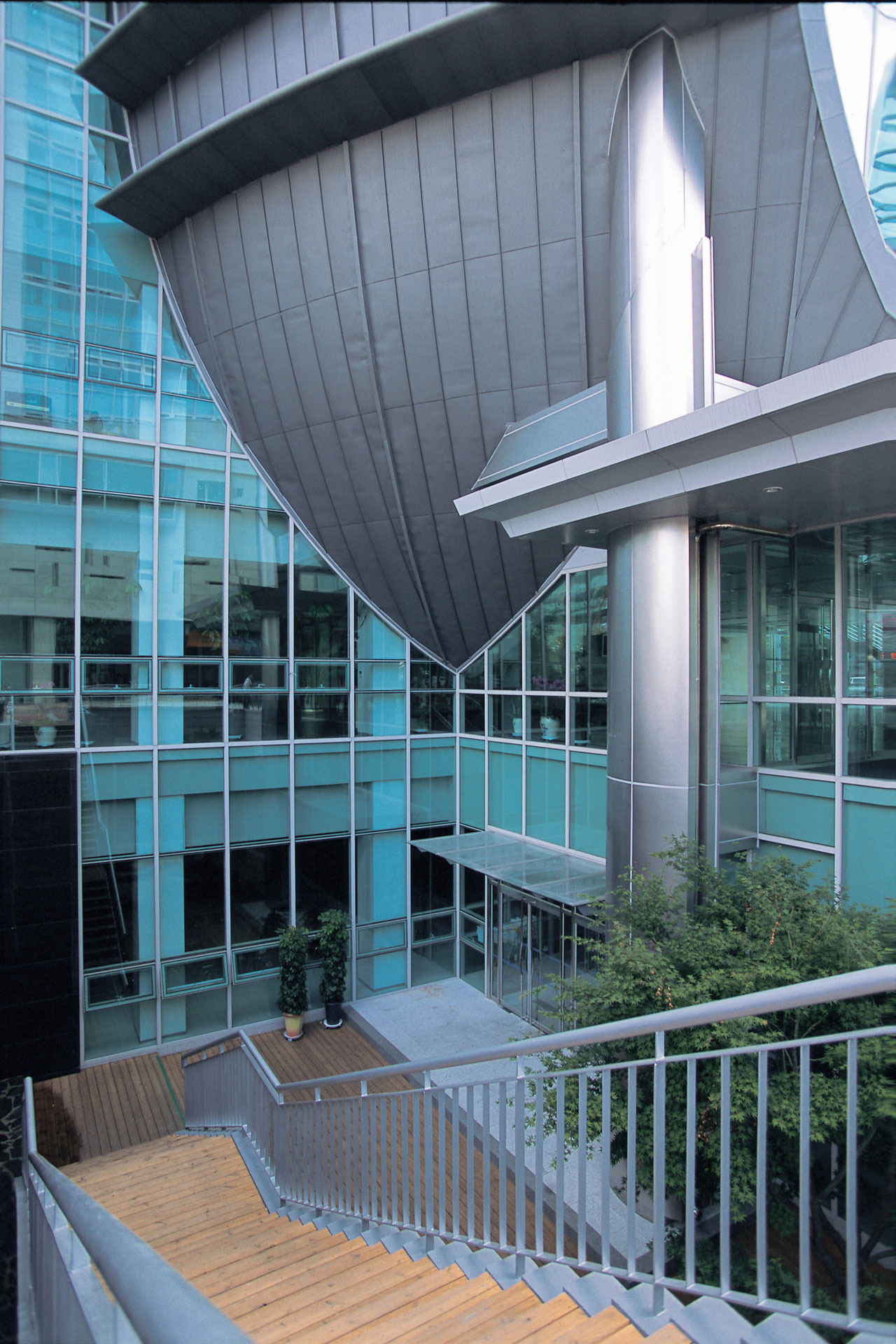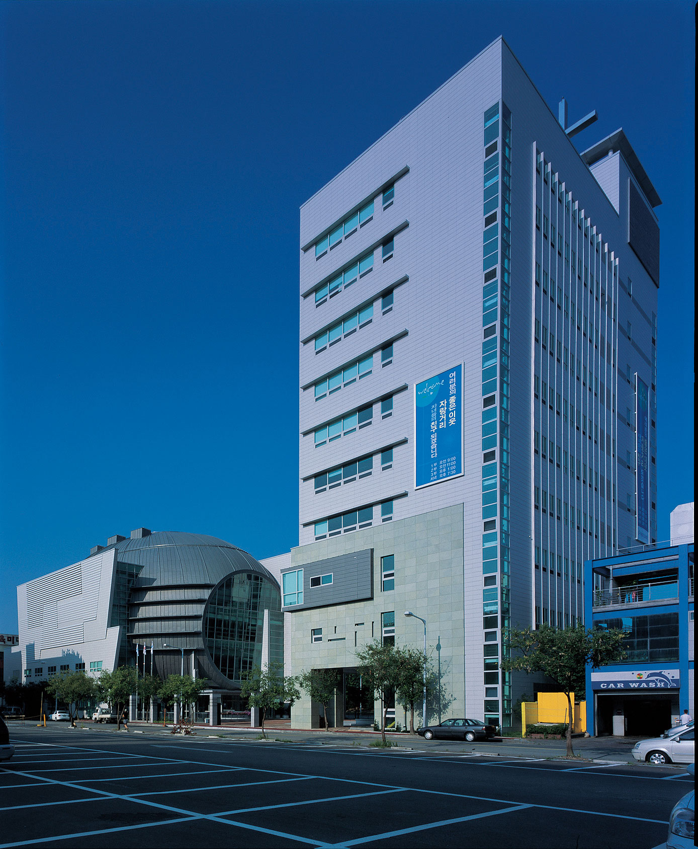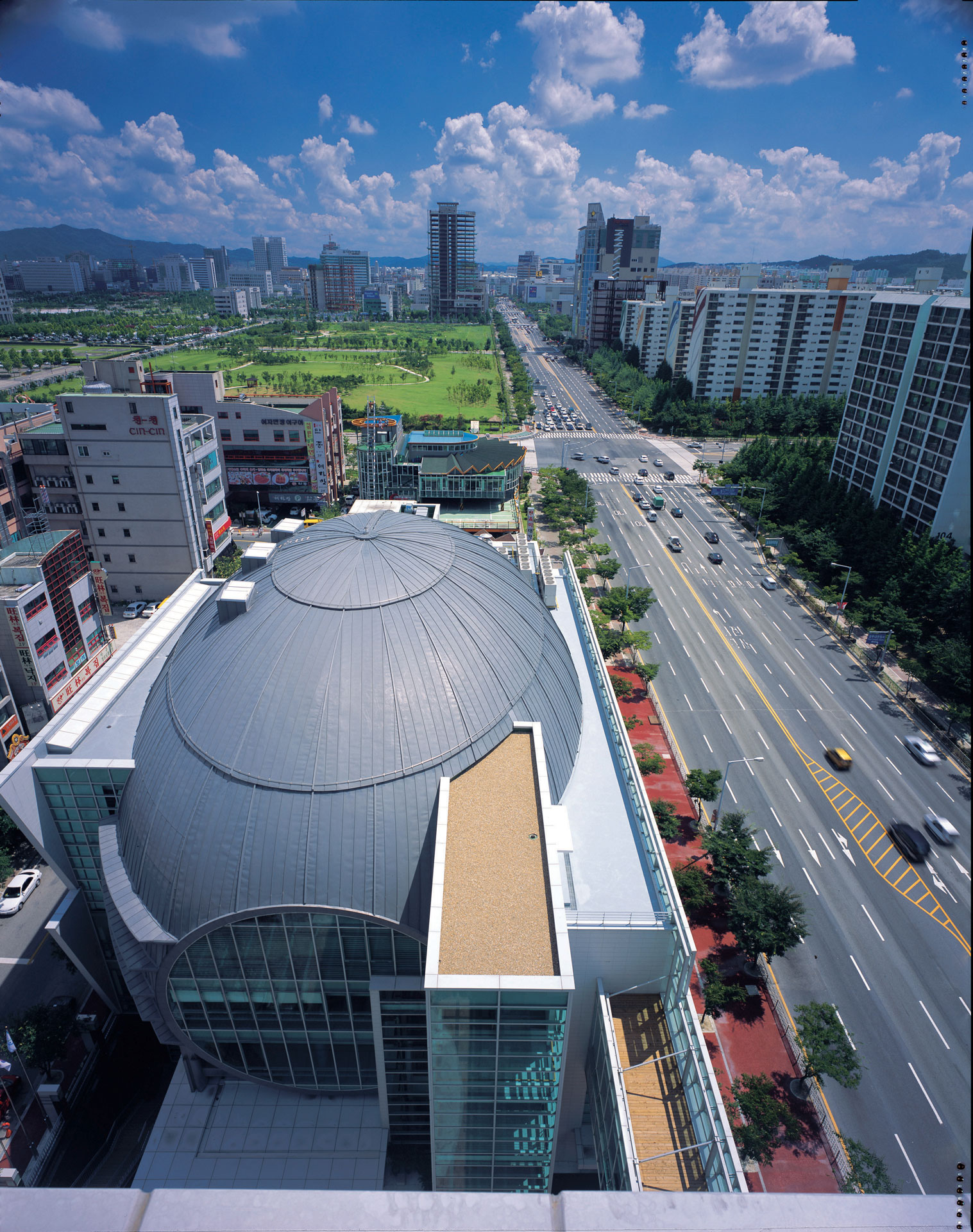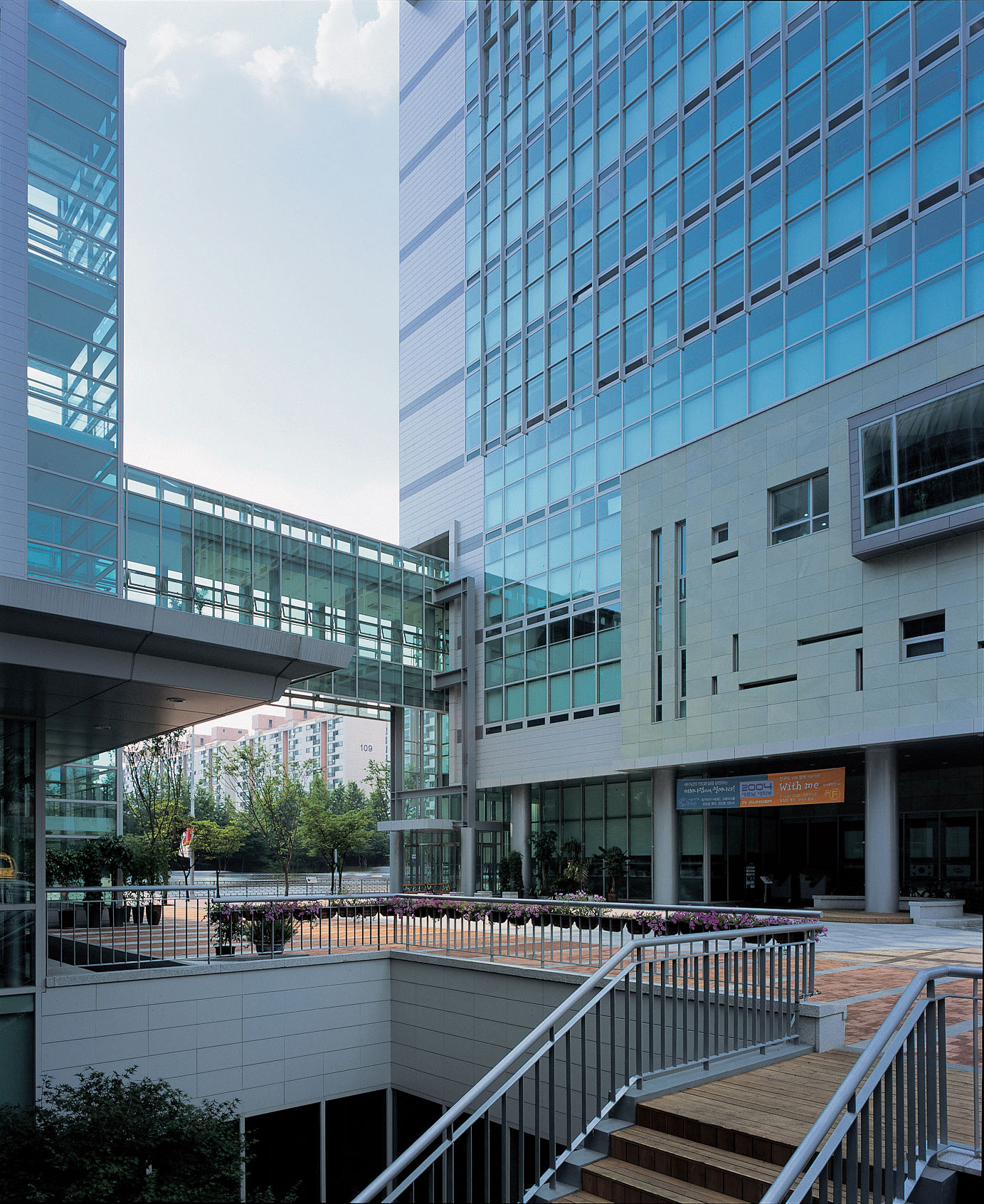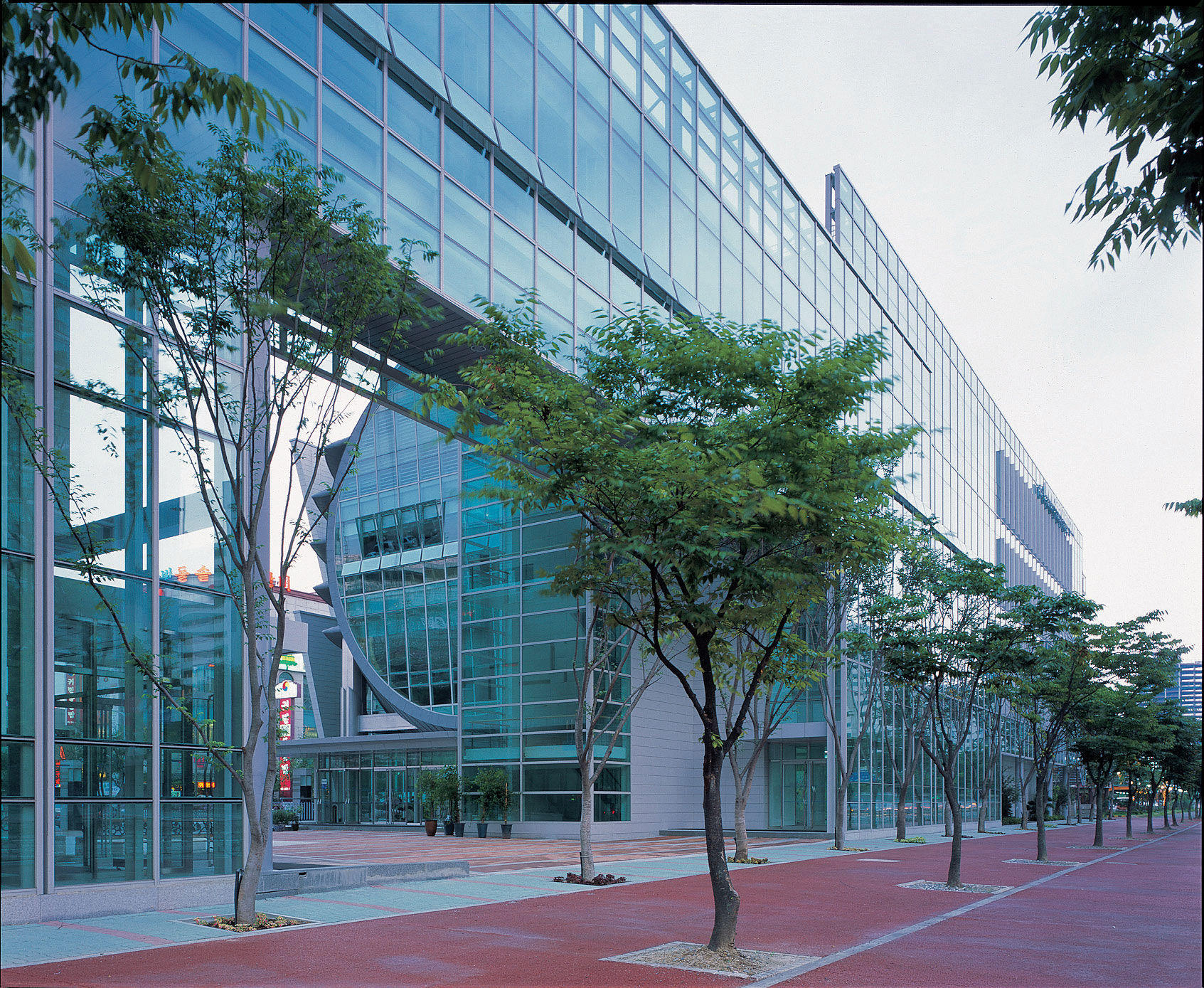 40m 대로변에 커튼월로 형성된 전면벽은 시각적인 의사소통의 수단으로서 작용하며, 내외부의 소음을 적절하게 걸러주는 보호벽으로서의 이중적인 기능을 수용한다.