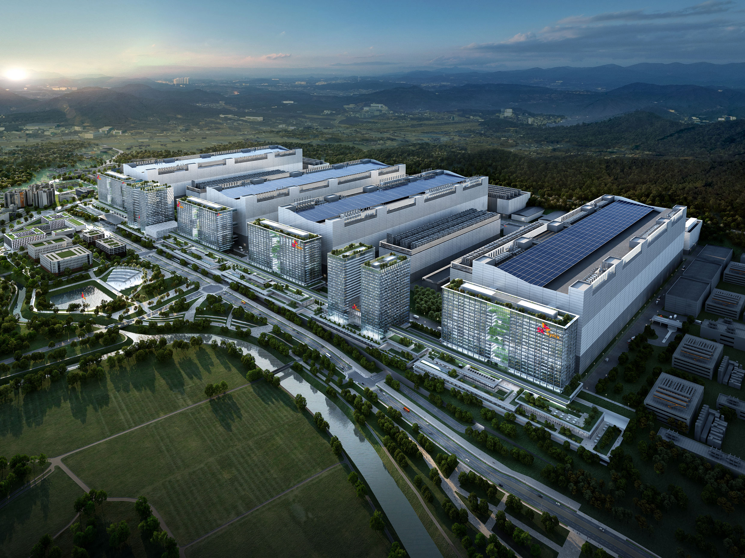 계획 시 생산 영역과 지원 영역을 상호 명확히 분리해 제조·물류 기능의 효율성과 안전성을 확보하는 동시에, 연구 및 업무 영역에는 보행 친화적이고 쾌적한 환경을 제공하는 데 중점을 두었다. 핵심 생산시설인 FAB은 세계 최초 3복층 클린룸을 적용한 단일 기준 세계 최대 규모의 첨단 시설로, 정림건축에서 SK하이닉스 M15·M16를 수행했던 경험을 바탕으로 최첨단 설계를 이어 진행하고 있다. 지원시설의 저층부는 단차를 활용한 테라스 구조로 계획해 외부 공간 접근성을 높였으며 풍부한 조경을 통해 구성원의 웰니스를 고려하였다.
