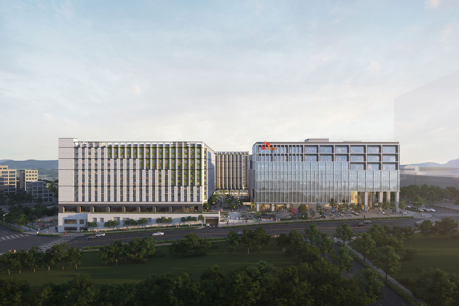 기숙사는 약 2,400실 규모로 다양한 부대시설과 편의시설을 갖추고 있으며, 전 객실 1인실로 계획해 구성원에게 최적의 주거 환경을 제공하고자 했다. 부지에 인접한 고당천변을 따라 가는 배치로 하천으로 열린 조망을 기숙사 객실마다 확보했다. 저층부에는 구성원의 커뮤니티 활동을 지원하는 다양한 공유공간을 배치해, 업무 시간 외에도 각자의 라이프스타일을 누릴 수 있는 환경을 마련했다.