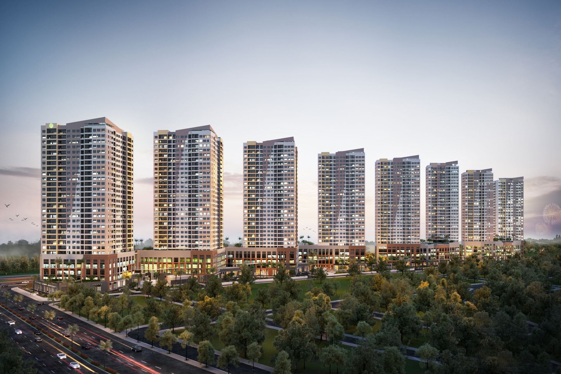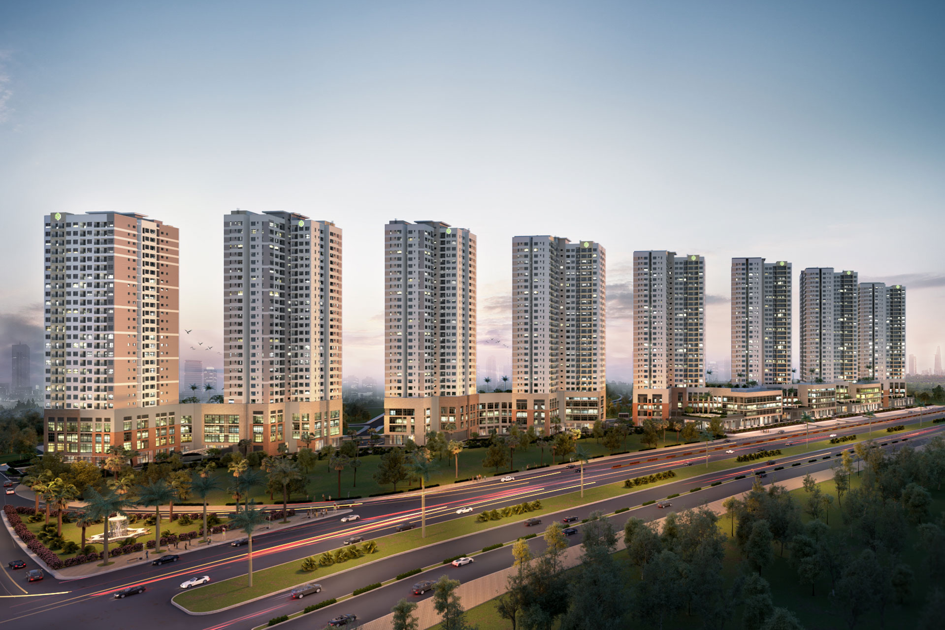 8개 타워가 일렬로 늘어선 건축 디자인은 호치민 시의 센트럴 업무지구(CBD) 대로를 인상적으로 만든다. 햇빛은 각 플라자와 거리에 내리쬐며 아침에는 눈부신 장면을, 저녁에는 반짝이는 풍경을 선사한다.