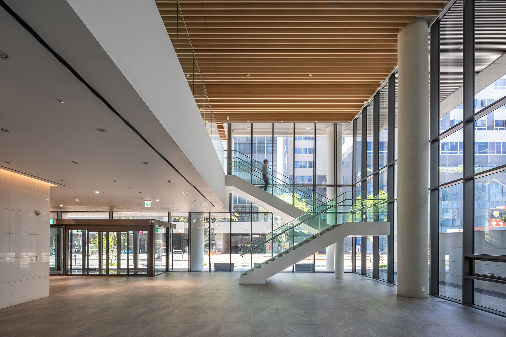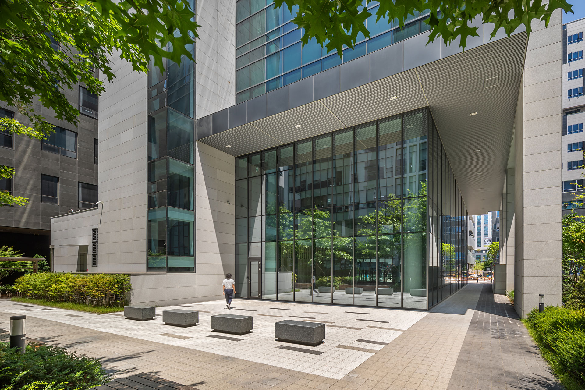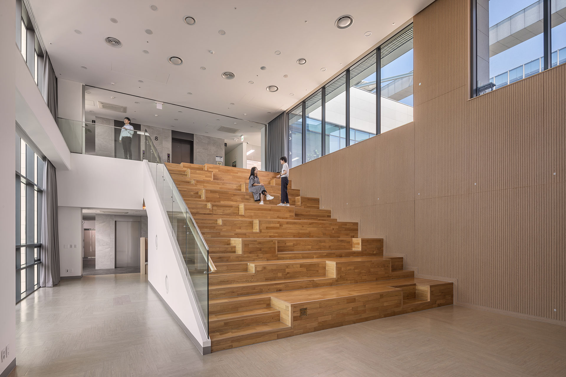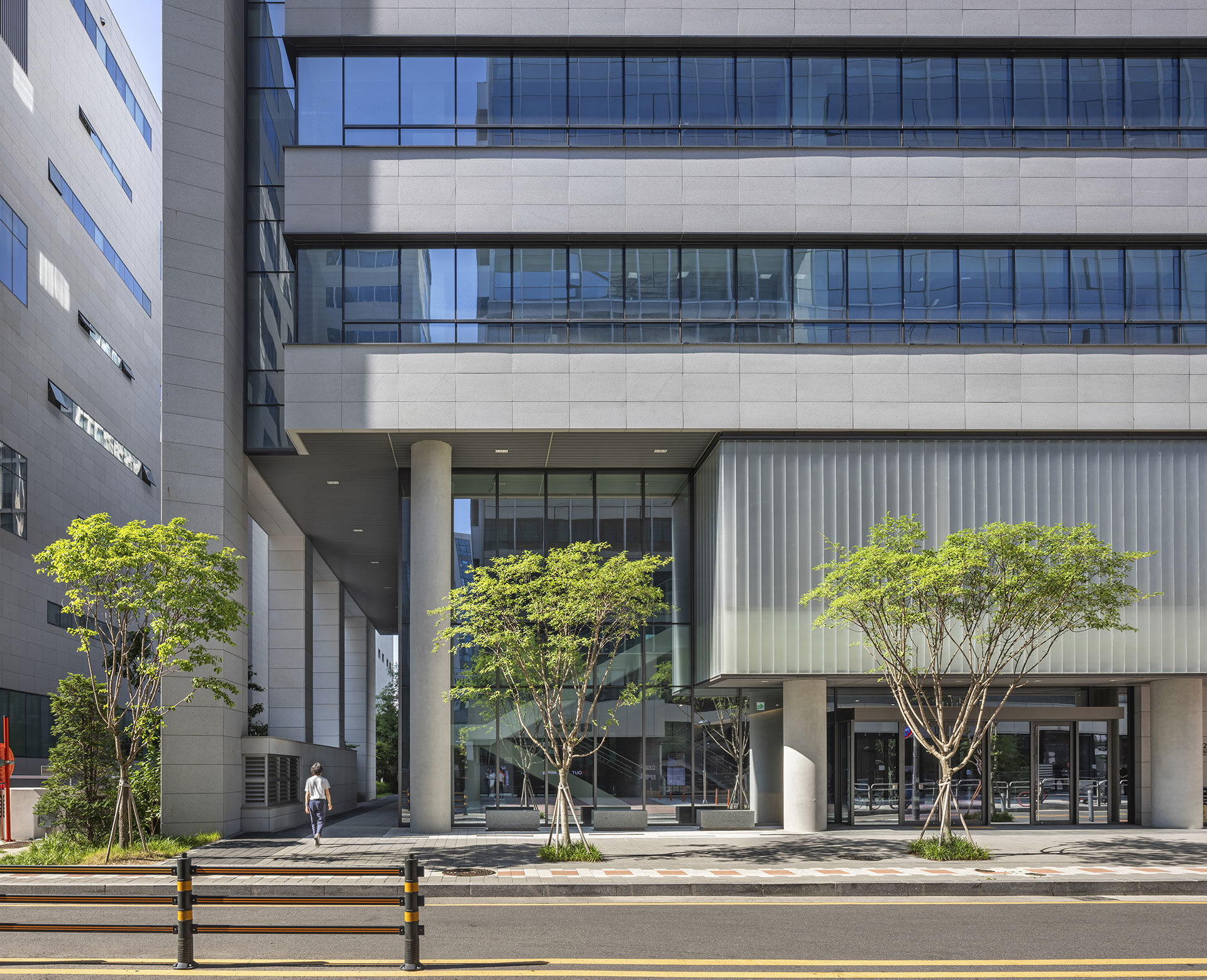 12m 이면도로에 접해 있는 부지는 도로부를 제외한 3면이 인접지에 면하고 있다. 이러한 특성을 고려해 건물은 정면성을 강조했으며, 필로티 및 2개 층을 오픈한 로비 계획으로 저층부에 개방감을 주었다. 업무 공간은 사용자의 이용 행태에 따라 유연하게 대응 가능한 ‘유니버설 플랜’로 계획했다. 커뮤니티 공간은 직원의 휴게와 교류를 위한 장소로, 내부에 다양성과 어메니티를 부여하고자 했다.