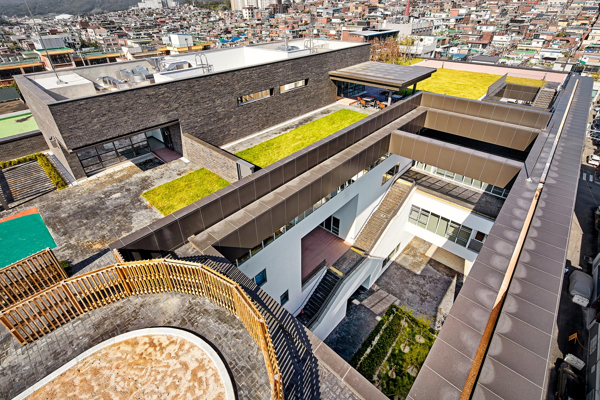 즉, 다양한 프로그램의 동선해결은 경사지를 통해서, 경사지라는 대지 컨디션이 가지는 수평공간의 부재는 프로그램의 적층에서 나오는 빈 공간에서 그 해법을 찾으려 했다. 따라서 프로젝트의 목표는 기능적인(동선, 레벨, 프로그램) context에 적합한 많고, 넓은 평지(마당)를 갖는 복합 문화센터 조성으로 귀결되었고,이는 대지가 갖는 장소성의 구현으로 연결되었다.