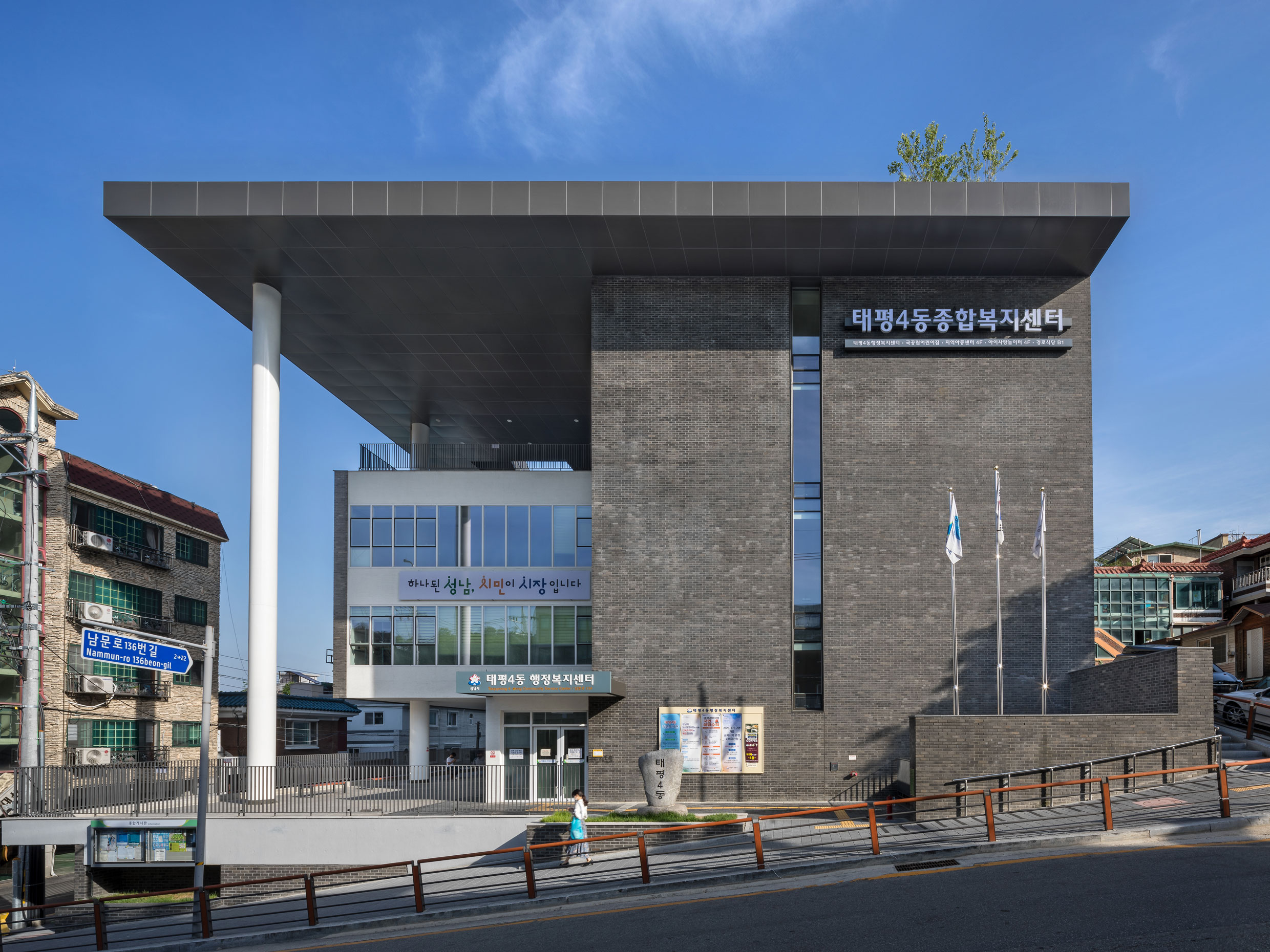 태평4동 행정복지센터는 대지 주변 경사지 레벨 극복과 5개의 각기 다른 프로그램의 효율적 배치라는 과제를 안고 시작되었다. 프로젝트 계획의 방향은 이러한 문제들을 서로 어떻게 잘 엮어나가는가에 집중되었다.