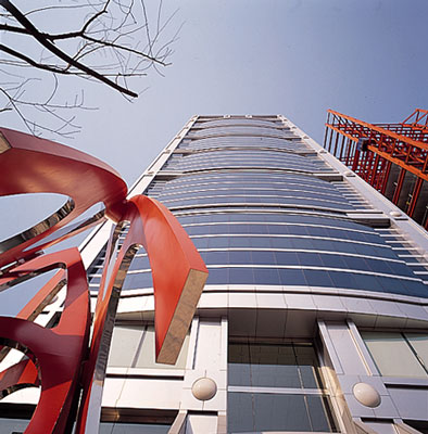 삼보컴퓨터 사옥에서는 먼저 면적 제한을 해결하고자 지상층에서 3개 층을 오픈한 로비와, 13층에서 3개 층을 오픈시킨 스카이 로비를 제안했다. 계획상 어느 정도 여유로운 사무실 영역과 평면적 제한이 있는 코어 로비는 서로 구분해 깊이를 달리했는데, 이러한 깊이 차이로 생기는 평면적 단순함은 부드러운 곡면으로 처리해 외관에서 느껴지는 금속의 차가움을 완화했다. 입면계획에서 재료는 컴퓨터 생산회사라는 성격에 걸맞게 세련되면서도 하이테크한 분위기가 반영되도록 알루미늄 복합판넬과 유리 커튼월을 사용했다. 3개 층 단위의 금속 프레임으로 짜인 외관계획은 강하면서도 개성 있는 입면을 연출한다. 건물은 현재 금융투자센터빌딩으로 사용되고 있다.