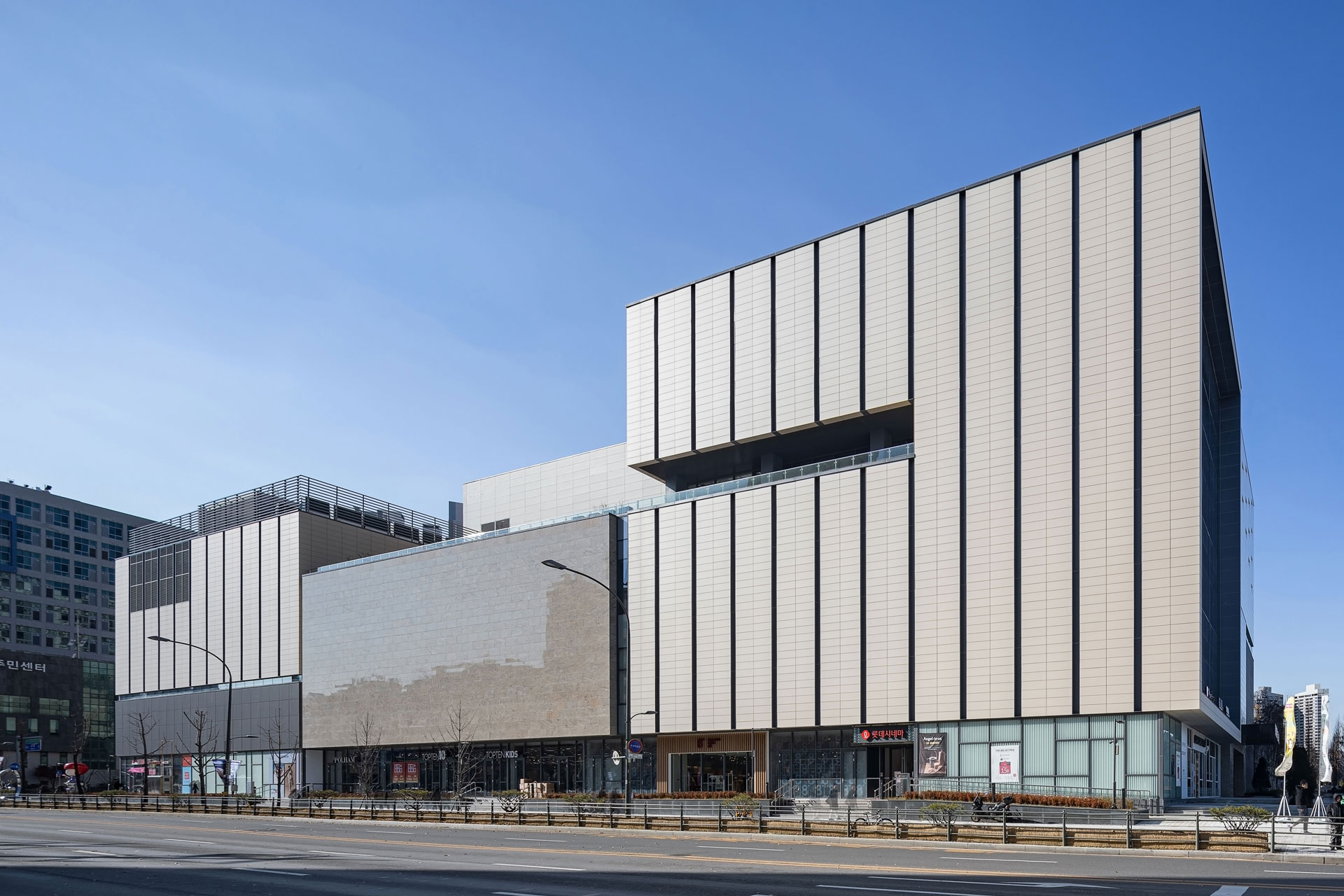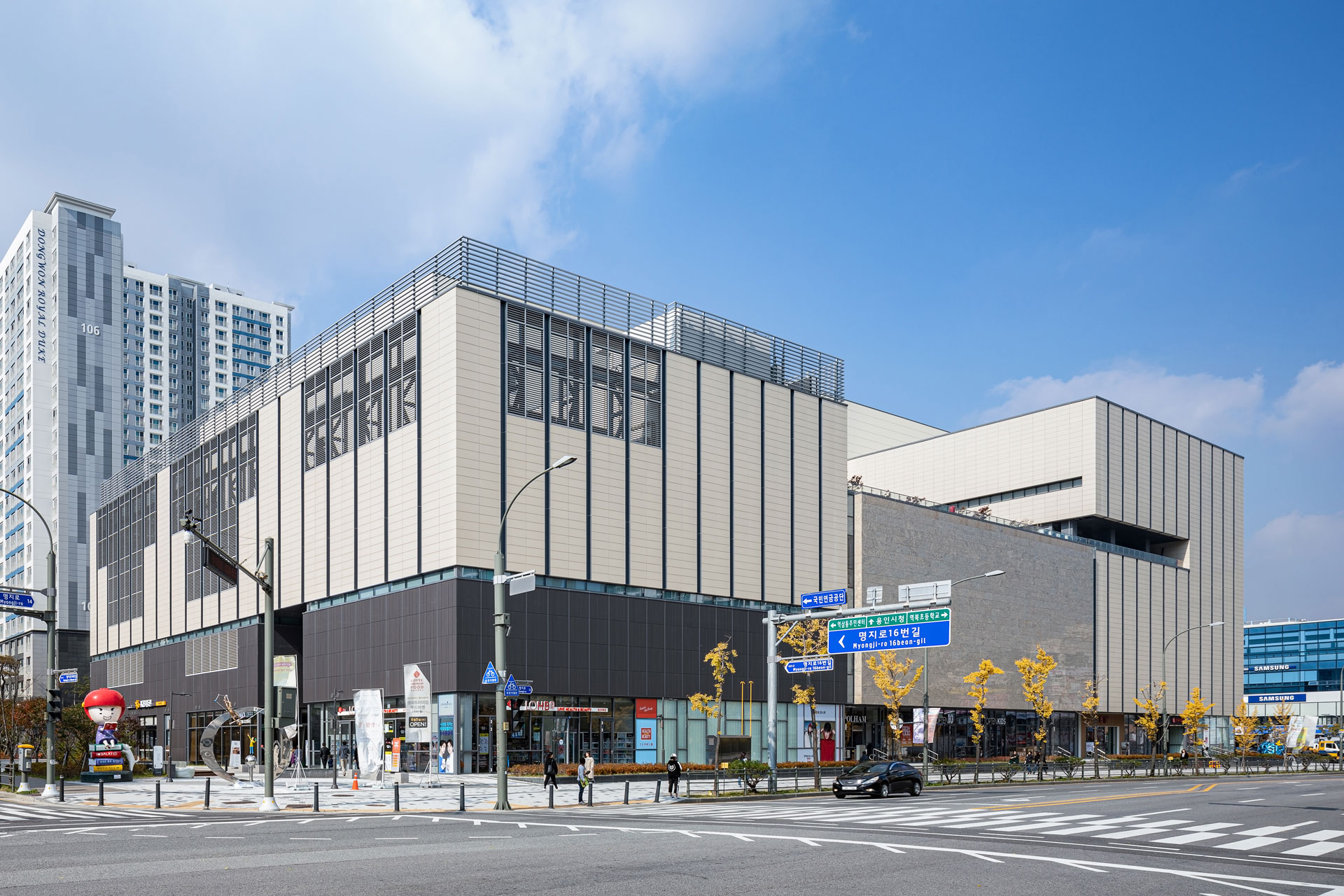부지 인근이 대학교와 아파트 밀집지역임을 고려하여 정갈한 박스 형태의 매스와 상층부 층까지 연결된 옥상 광장을 계획해 개방감을 표현했다. 건물 입면에는 수직 패턴과 매립된 경관 조명을 활용하여 활기찬 이미지를 연출했다. 재료의 물성이 자연스럽게 나타나는 벽돌 및 타일 패널을 사용하여 시간이 지나도 중후하면서도 친밀한 느낌이 나도록 계획했다.