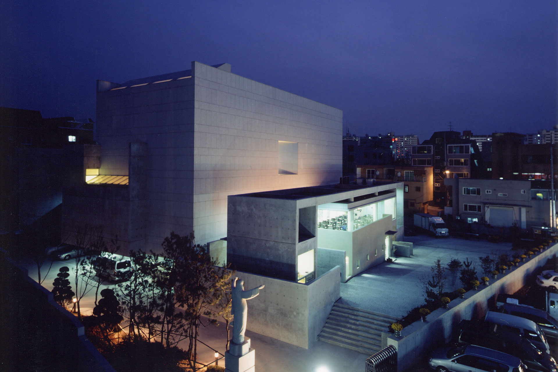 조용함과 시끄러움이 공존하는 장소의 느낌을 유지하고자 했다. 성(聖)과 속(俗), 안과 밖의 관계 그리고 완벽한 하나보다는 ‘시끄러움에 놓인 성스러움’을 어떻게 표현할지 고민했다. 고딕 성당건축의 깊이가 공간에서 볼륨으로 바뀐다면 아마도 무표정의 거대한 박스 하나로 집약하고 싶은 욕망이 아니었을지. 내부 공간에서는 빛이 모든 것을 답해주길 바랐으며 공유하는 외부 공간 설계에서는 건축가로서 가진 역할에 한계가 있어 벽이 없는 관계의 공간과 함께하는 건축을 만들고자 노력했다. 집 속에 길을 만들며 외부 공간과 내부 공간을 연결해 골목 문화에서 얻었던 것들을 현대 건축에서 실현해 보고자 했던 노력으로 이해된다면 좋겠다.