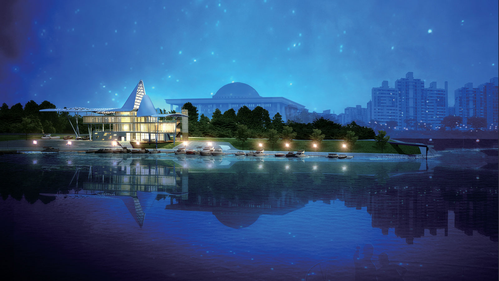 Marina Culture Space는 도심 속 자연, 한강을 느끼고 요트문화를 쉽게 체험하고 다양한 형태의 Media Art를 즐길 수 있는 복합레저문화시설이다. 핵심시설인 클럽하우스는 요트 형태를 상징화 하여 한강변의 독창적인 이미지를 부여하고, 계류시설은 한강의 수위 변화에 완벽하게 대응할 수 있도록 하였다. 옥외 공간은 한강시민공원과 연계되어 서울 시민에게 열린 Marina Park로 조성하였다. Marina Culture Space는 한강르네상스의 중심이 되어 새로운 서울의 명소가 될 것이다.